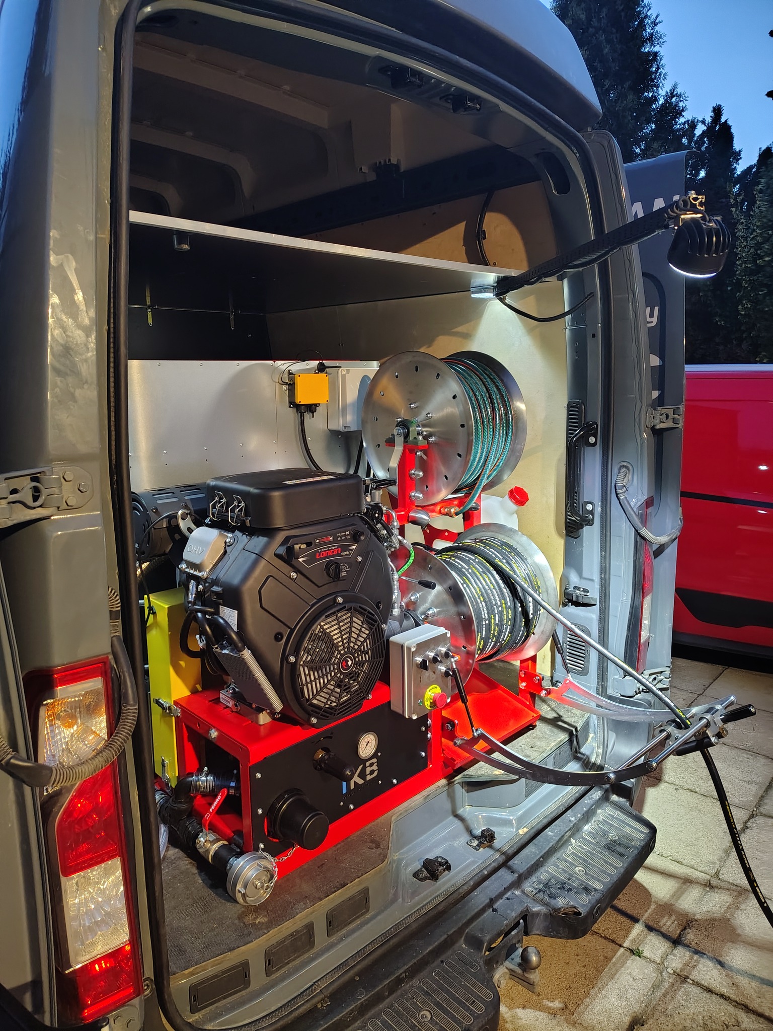 Durch die optionale Verwendung eines kompakten 800 l Tanks beträgt die Gesamtlänge des Sets nur 140 cm. Diese Lösung spart wertvollen Platz im Fahrzeug, was entscheidend für den Transport anderer notwendiger Arbeitsgeräte ist.