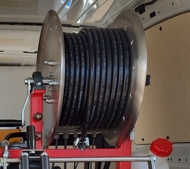Ausfahren oder Einziehen des Druckschlauchs.